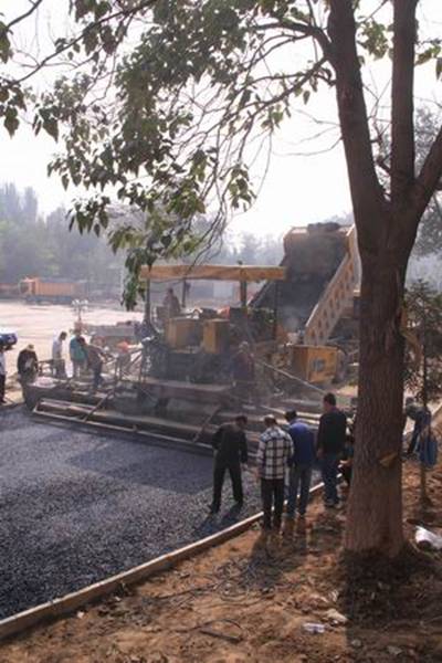 圖1—2為攤鋪機械正在跑道上進行鋪設(shè)作業(yè)的場景
